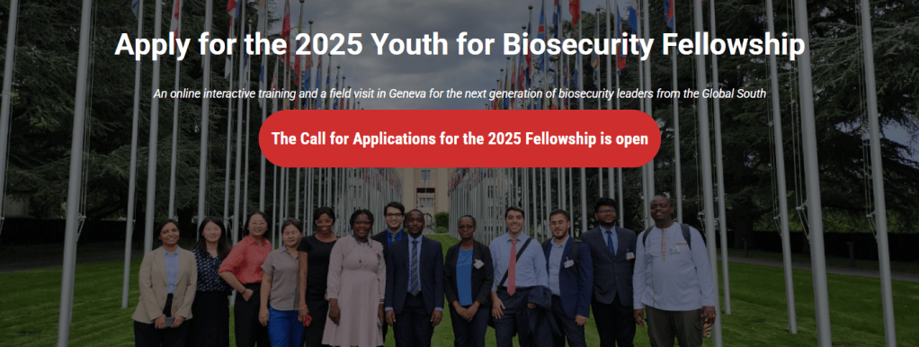 Organized by the United Nations Office for Disarmament Affairs in Geneva, in partnership with key international actors that empower youth in science diplomacy and global biosecurity, the Youth for Biosecurity Fellowship provides a unique learning and networking experience in the framework of the Biological Weapons Convention.