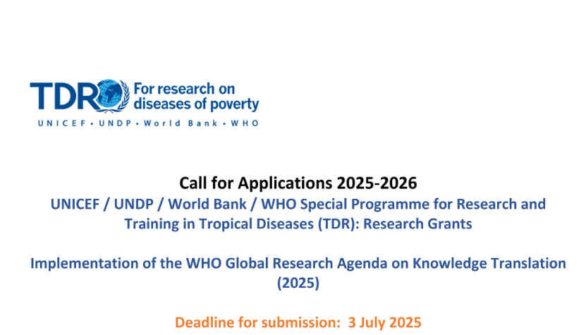 Preference will be given to those studies that show how their research will support the 2024–2029 TDR strategy that builds on our experience to support country-led implementation research to improve access to and scale-up of health interventions, strategies, and policies and strengthens health systems. We work with implementers and social innovators, alongside researchers, to help democratize research and demonstrate that it is a useful and practical tool for people tackling health issues on the ground.