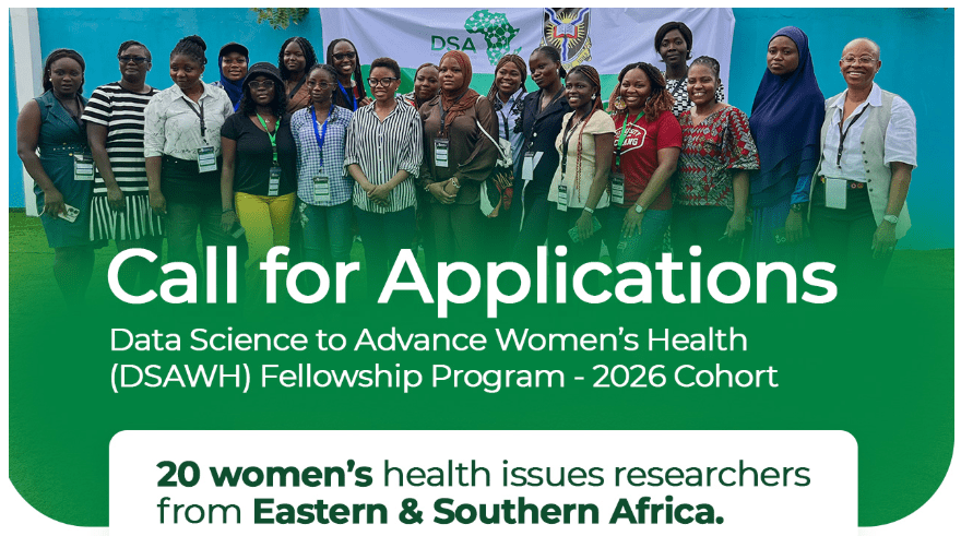 Are you a passionate woman researcher committed to addressing women’s health challenges in Africa? Applications are now open for the Data Science to Advance Women’s Health (DSAWH) Fellowship – 2026 Cohort — a transformative 9-month program designed to equip women scientists with the knowledge, tools, and networks to make data-driven impact in health research.
